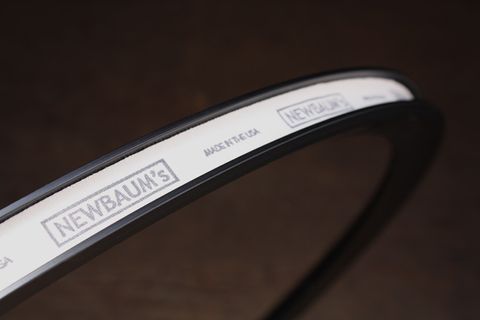 Our rim tape material is a cotton-synthetic blend. Edges are reinforced. The adhesive we are using is slightly tackier than the leading rim tape maker. Made in the USA.