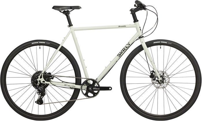 Designed to introduce unfamiliar riders to Surly’s pavement and gravel line, Preamble highlights Surly’s most essential features: Durable custom steel tubing, a renowned ride feel, and just the right mounts for running racks, fenders, and bottle cages. It’s disc-brake specific and shares a single-position vertical dropout with Surly Bridge Club. For new weekend riders and veteran commuters, Preamble makes it easier than ever to get out of the car and on top of tough and comfortable Chromoly steel.