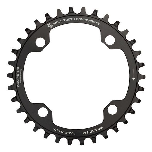 - Drop-Stop® technology. On Wolf Tooth’s patented wide/narrow chainring, the wide side of the tooth has maximum contact on the drive side which spreads the load and improves chainring life. The narrow side allows clearance for mud and debris which reduces friction