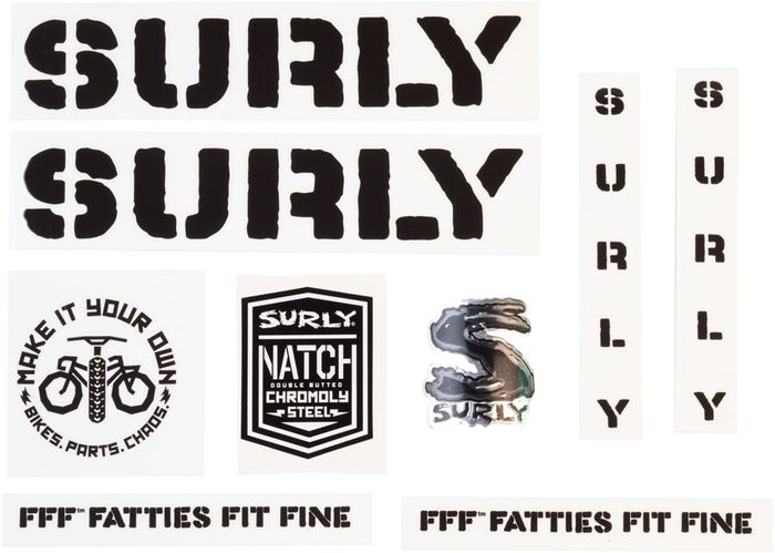 Further personalize your unique Surly bike with one of four Surly Make It Your Own Decal Sets, featuring alternative fonts and designs for the discerning rider. Stickers may also be affixed to helmets, mini fridges, dog food bowls, and more.