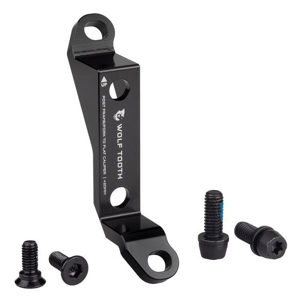 The Wolf Tooth Post to Flat Mount Brake Adapter allows flat mount brakes to be added to a frame or fork that was designed for post mount brakes. This is a vital component for cyclists who want to run a road groupset on a mountain bike frame.