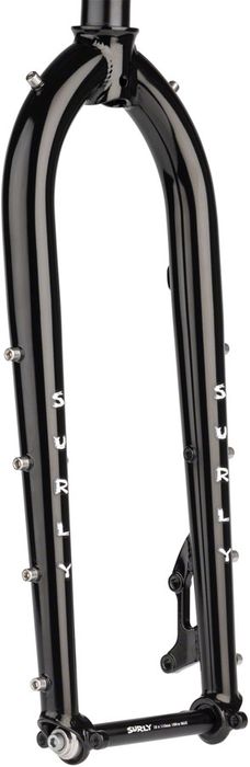 The Dinner Fork can handle most any task and terrain. Made from 100% Surly Chromoly steel and ready to accommodate both 27.5” and 29” wheel sizes, the fork offers impressive tire clearance, fender and rack compatibility, and 3-pack mounts on each leg.