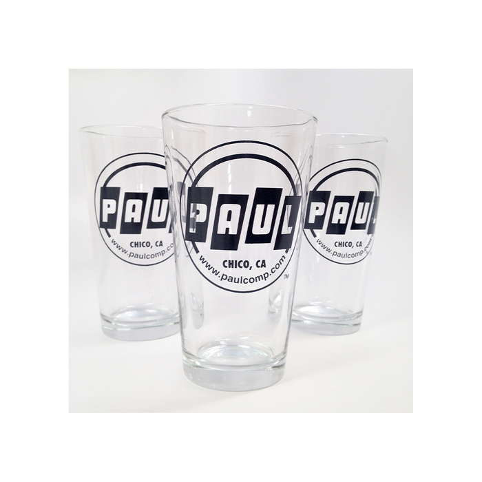 A heavy duty Pint Glass featuring the PAUL Logo