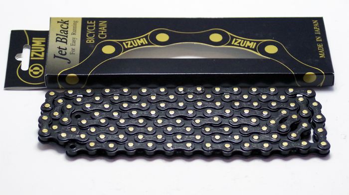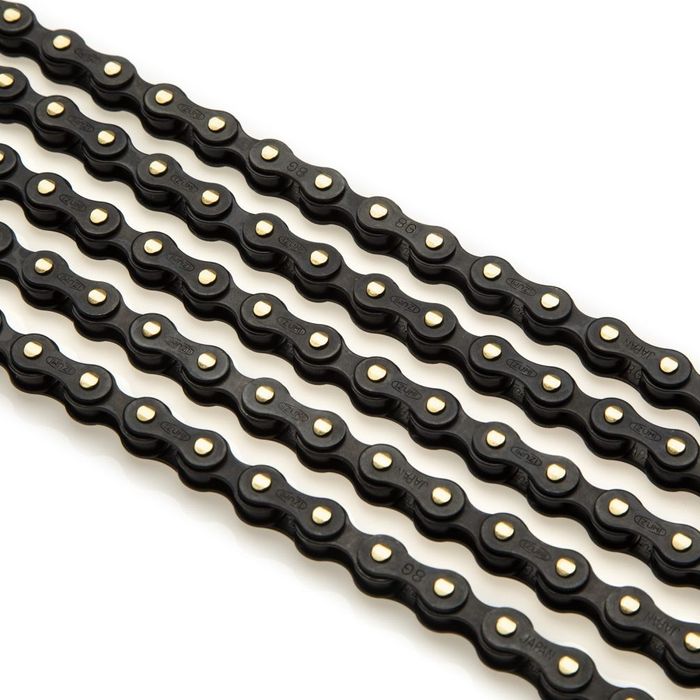 BLACK LINKS WITH GOLD PINS. Will work for track, BMX or internal geared hubs. 116 links. 1/8"