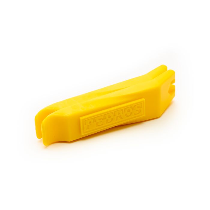 The tire lever, though seemingly one of the simplest and most basic of cycling tools, is one commonly used by almost every cyclist, and unfortunately, one often responsible for unnecessary frustration. Really, what is more fun than flatting far away from home, being thrilled you lugged that spare tube and pump, and then having your tire levers snap in two? Pedro's award winning, universally loved tire levers feature molded box construction and a proprietary plastic composite blend that makes them the strongest levers available. The unique chisel tip shape easily inserts beneath the tire bead and the slightly thicker shape keeps the lever securely in place. Additionally, the bold shape of the lever and helpful dual spoke hooks makes removal of even the tightest tires a simple task. Bright colors make them easy to spot in the shop or in the woods so you don't lose them. As long as your riding buddies don't steal them from you, we are confident the Pedro's Tire Levers will be the last levers you buy. Do yourself a favor and give them a try. You will love them! If you ever, somehow, manage to use your gorilla strength to break them, our levers are back by Pedro's lifetime warranty, and we will happily replace them for you.