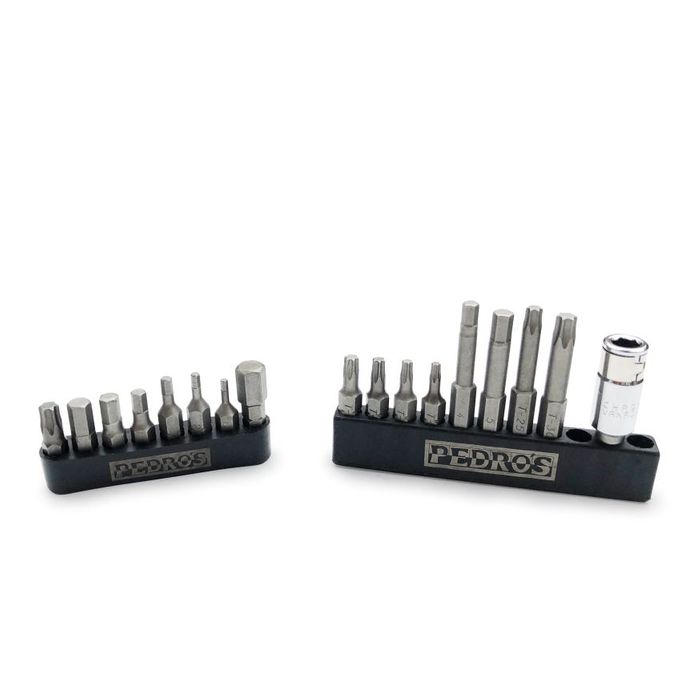 Pedro's Hex Bit Set II is designed to work with our torque wrenches offering an extensive range to handle most hex and torx needs. The set includes longer 50mm bits in key sizes to ensure compatibility and fit with all components where standard 25mm bits fall short. Bits are made from premium S2 tool steel for strength and lasting performance.