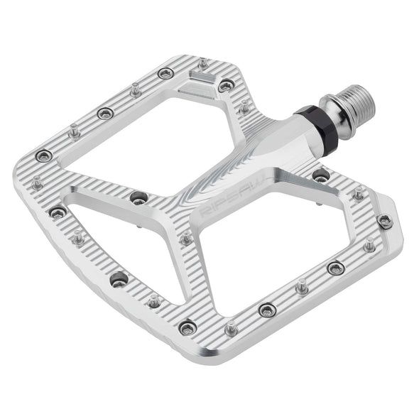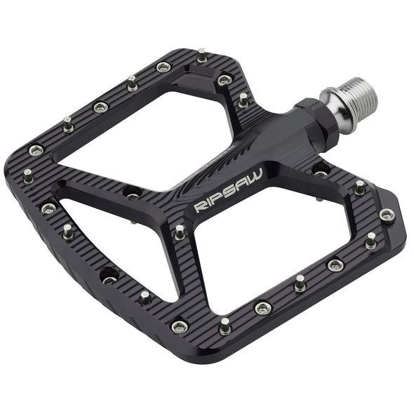 The new Ripsaw Aluminum Pedals feature a slim, lightweight design with a slight convex profile. The large, asymmetric aluminum platform provides strong foot support for all-mountain riding, while the minimal convex profile is just 7mm thick at the leading edge. These are designed for cyclists who prefer a mid-foot riding position, where the ball of the foot is in front of the pedal spindle and the arch of the foot aligns with the convex arch in the center of the pedal. Inside Ripsaw Aluminum Pedals is a 17-4 stainless steel axle, three sealed cartridge bearings, and one igus bushing with a custom radial seal to protect internal components from trail debris and dirt.