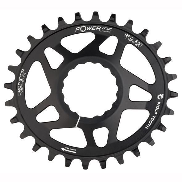 - Wolf Tooth’s patented Drop-Stop® wide/narrow tooth profile for the ultimate chain retention and mud shedding ability.