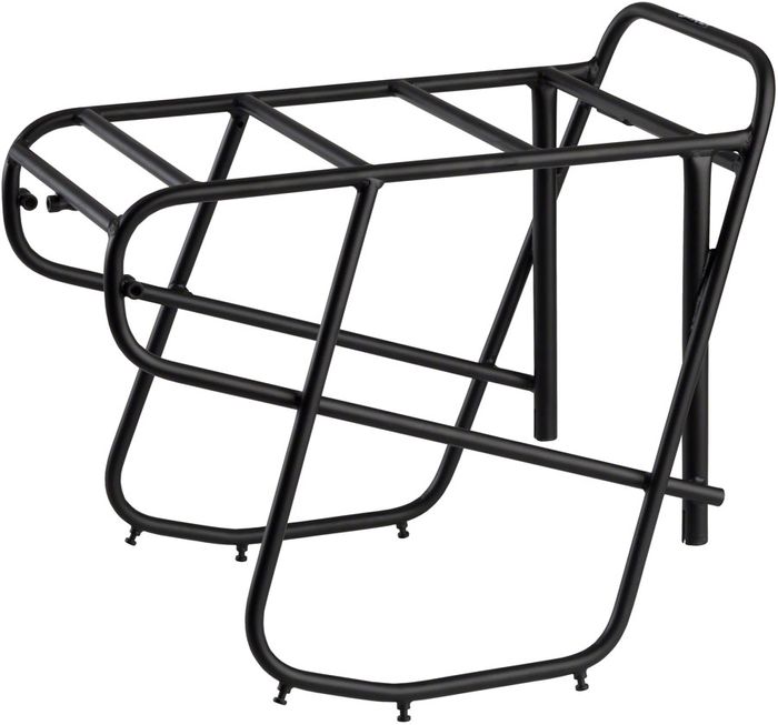 The rear Rack is also height-adjustable, enabling it to fit a wide variety wheel sizes while allowing you to move its center of gravity as low as possible for a more stable ride. Its wide platform has plenty of room for rack trunks, sleeping bags, tents, boxes of lima beans, or small cages full of hamsters. The stainless steel hardware we provide will enable you to fit them to most rigid 26" and 700c frames, and to forks equipped with drum, caliper, or cantilever brakes. Disc brakes and suspension are generally not compatible with our rear Racks, though there is an increasing number of frames designed to allow the use of racks and disc brakes.