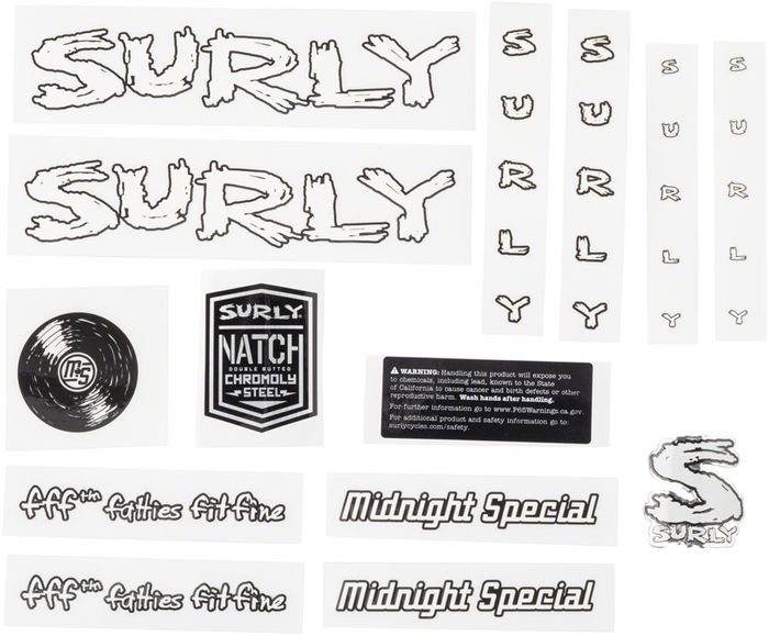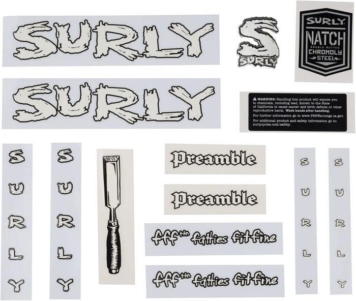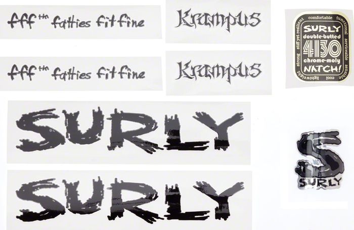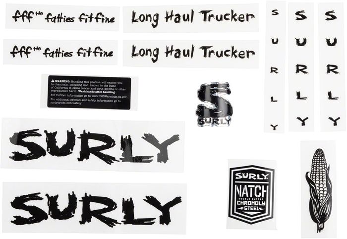 Further personalize your unique Surly bike with one of four Surly Make It Your Own Decal Sets, featuring alternative fonts and designs for the discerning rider. Stickers may also be affixed to helmets, mini fridges, dog food bowls, and more.